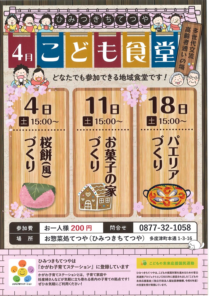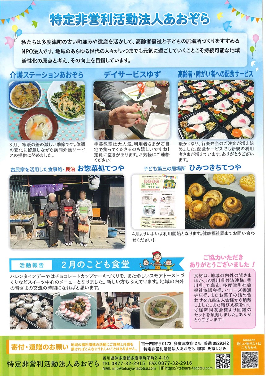 NPO法人あおぞらでは、2023年1月より、毎週第2,第4土曜日の15時より1時間程度こども食堂を開所しております。